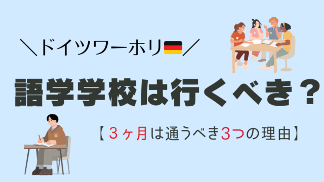 行く前の準備 【最低3ヶ月】ワーホリでは語学学校に行くべき理由を経験者が解説します。 scallop1209 https://377scallop.com/wp-content/uploads/2025/11/すかるぷのブログ-4.png すかるぷのドイツワーホリ辞典 悩んでいる人 海外留学で語学学校って必ず行くべきなのか分からないよ… こんなお悩みを解決します。 今回は海外 …