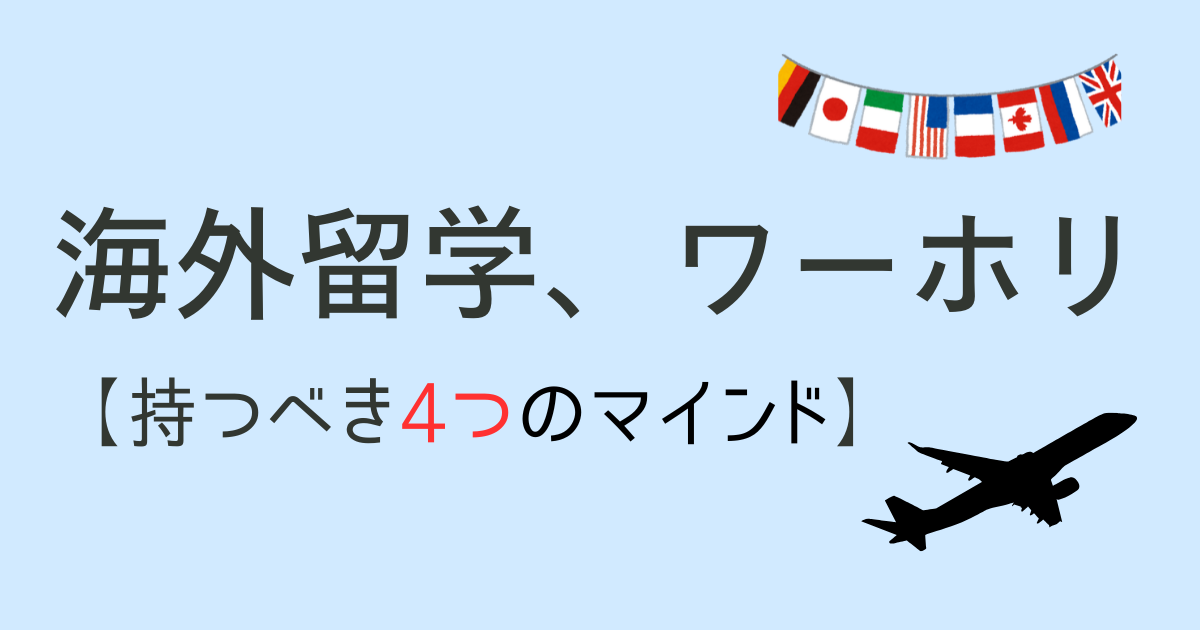 今回は留学、ワーホリで持つべき4つのマインドについてお伝えしました。