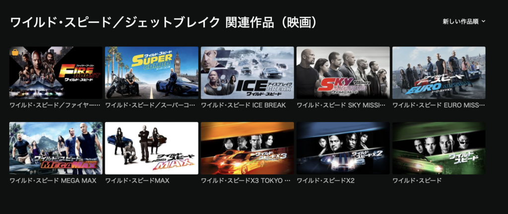 ▼Huluの「ワイルドスピード」シリーズ