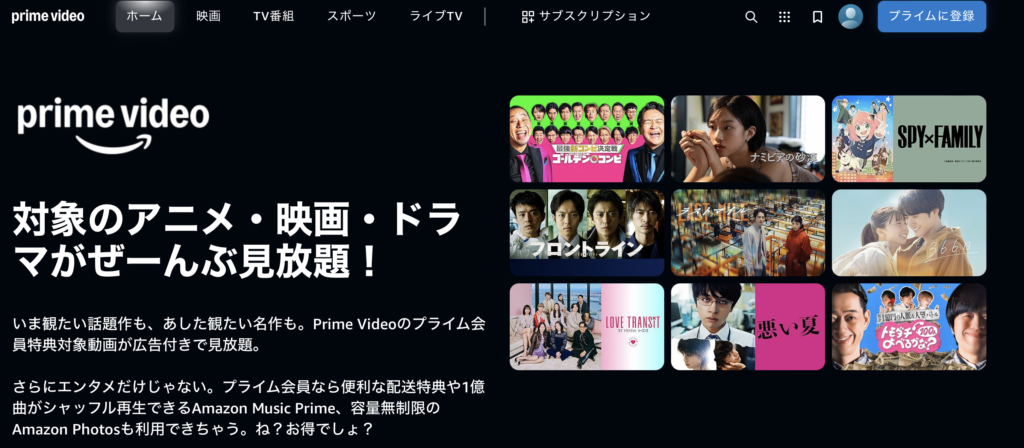 個人的には、Amazon Prime Videoが最もおすすめです。