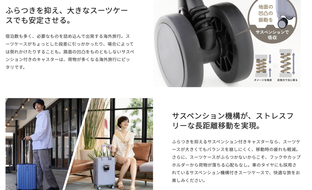 シーン別で探せるので、自分の目的にあったスーツケースが購入可能です。